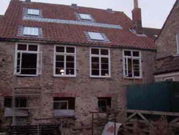 A view of the East face with the roof finnished and windows installed ready for glazing.