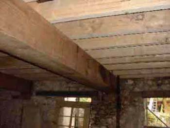 In the Eastern half of the building the original main beams had collapsed from rot. They were replaced with these foot square section pieces of local Douglas Fir, each weighing over half a tonne.