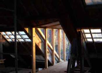 Through the west slope of the roof this bridge is ready to meet the tower which will be built to carry a drop-weight generator, as a back up power source.